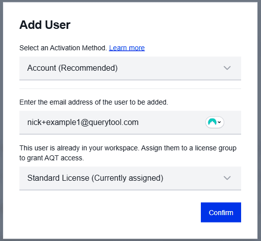 There are three methods for Users to activate their assigned AQT seat. As an Admin, you decide which method of activation they will use when you assign their seat in the License Portal.