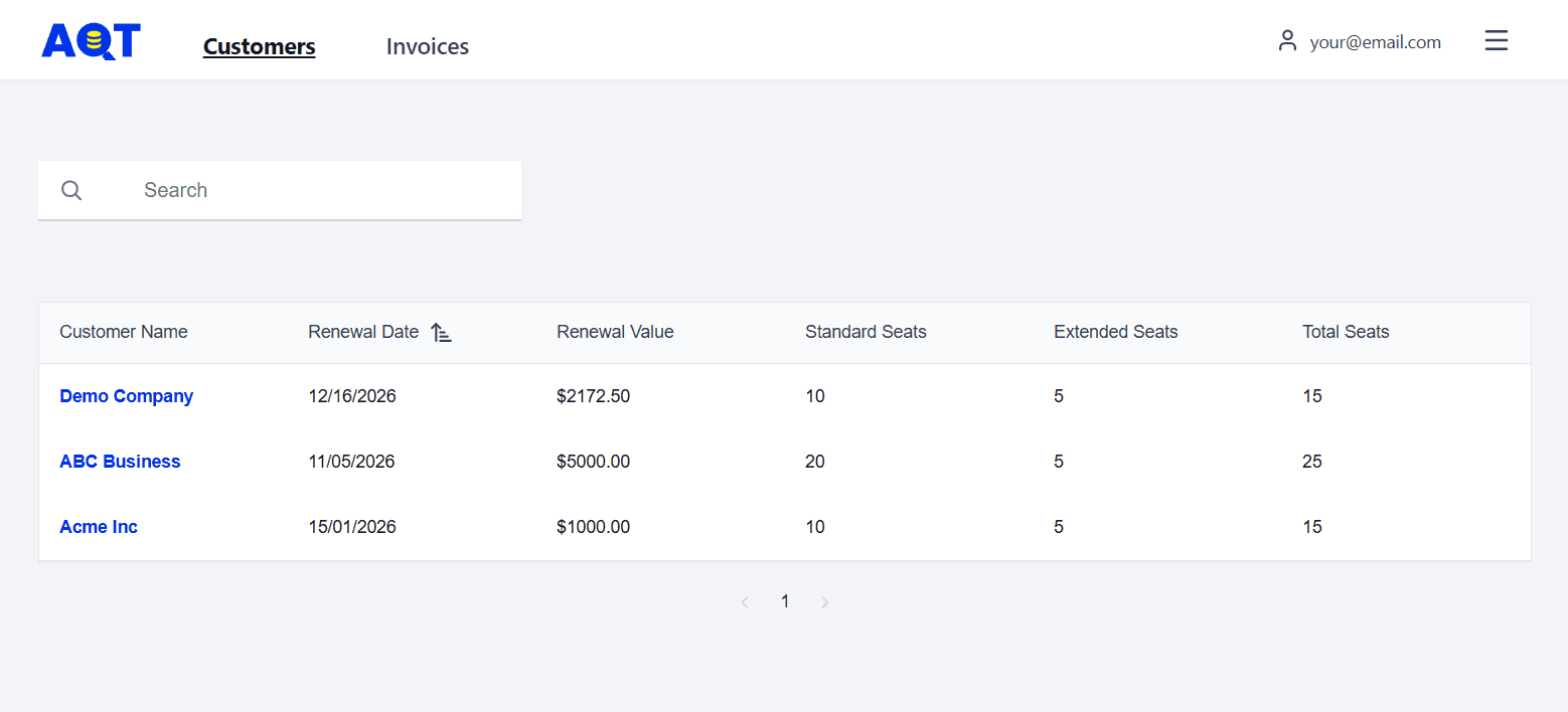 Customers are assigned to resellers manually by the AQT team. If you manage a customer with an active AQT One subscription and they do not appear on the list, let us know at support@querytool.com.
